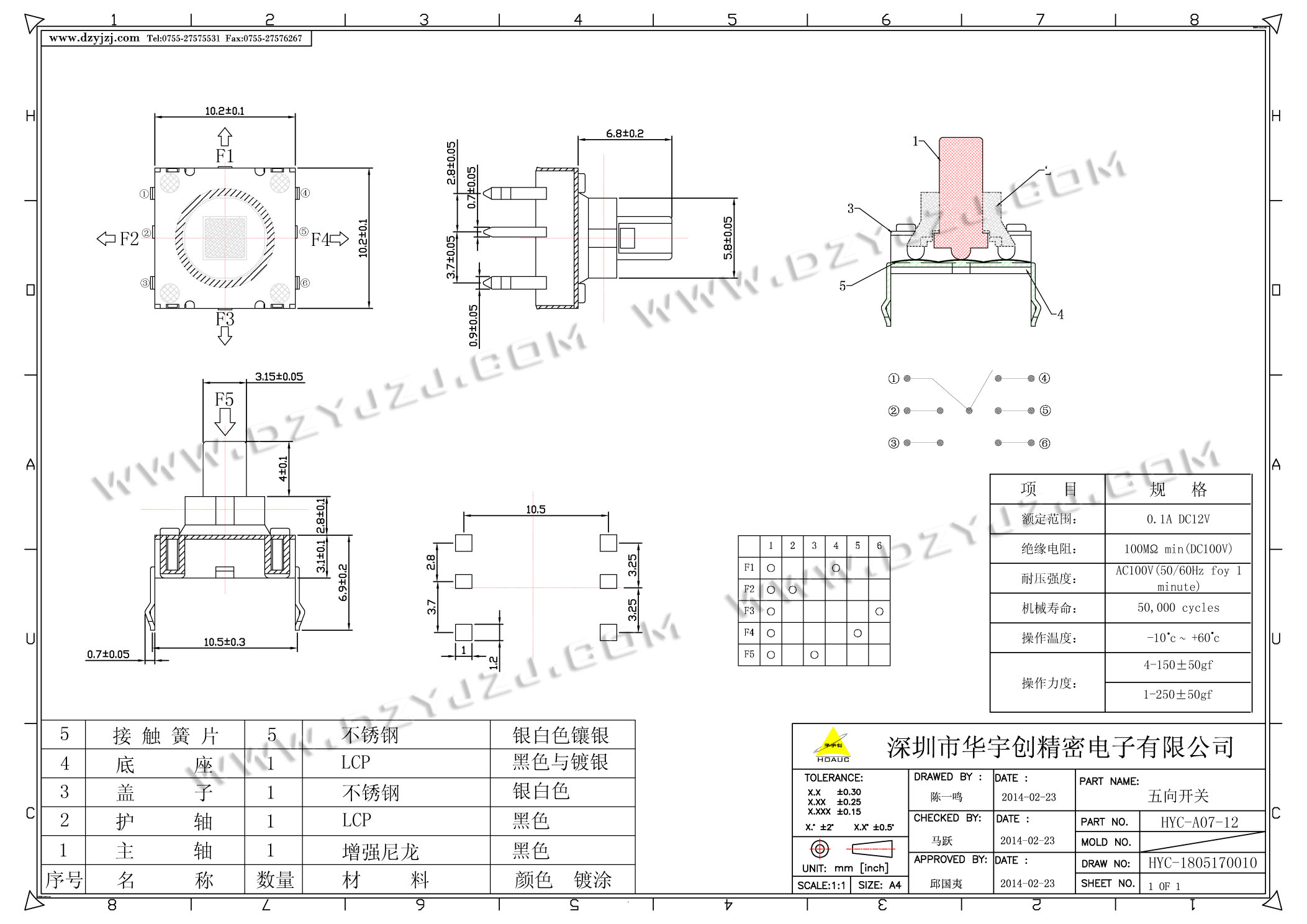 五向开关 A07-12 点击复制