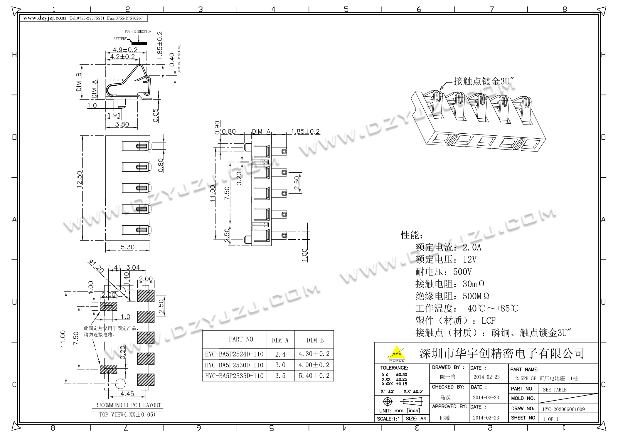 | 商品料号 | HYC-BA5P25XXD-110 |