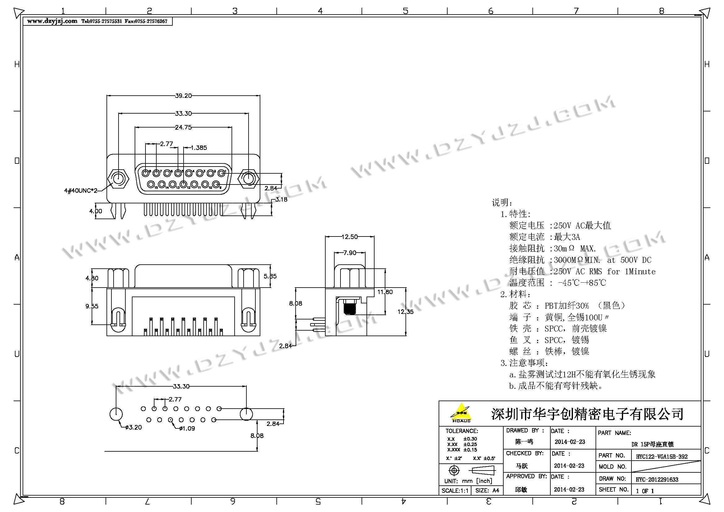 | 商品料号 | HYC122-VGA15B-392 |
