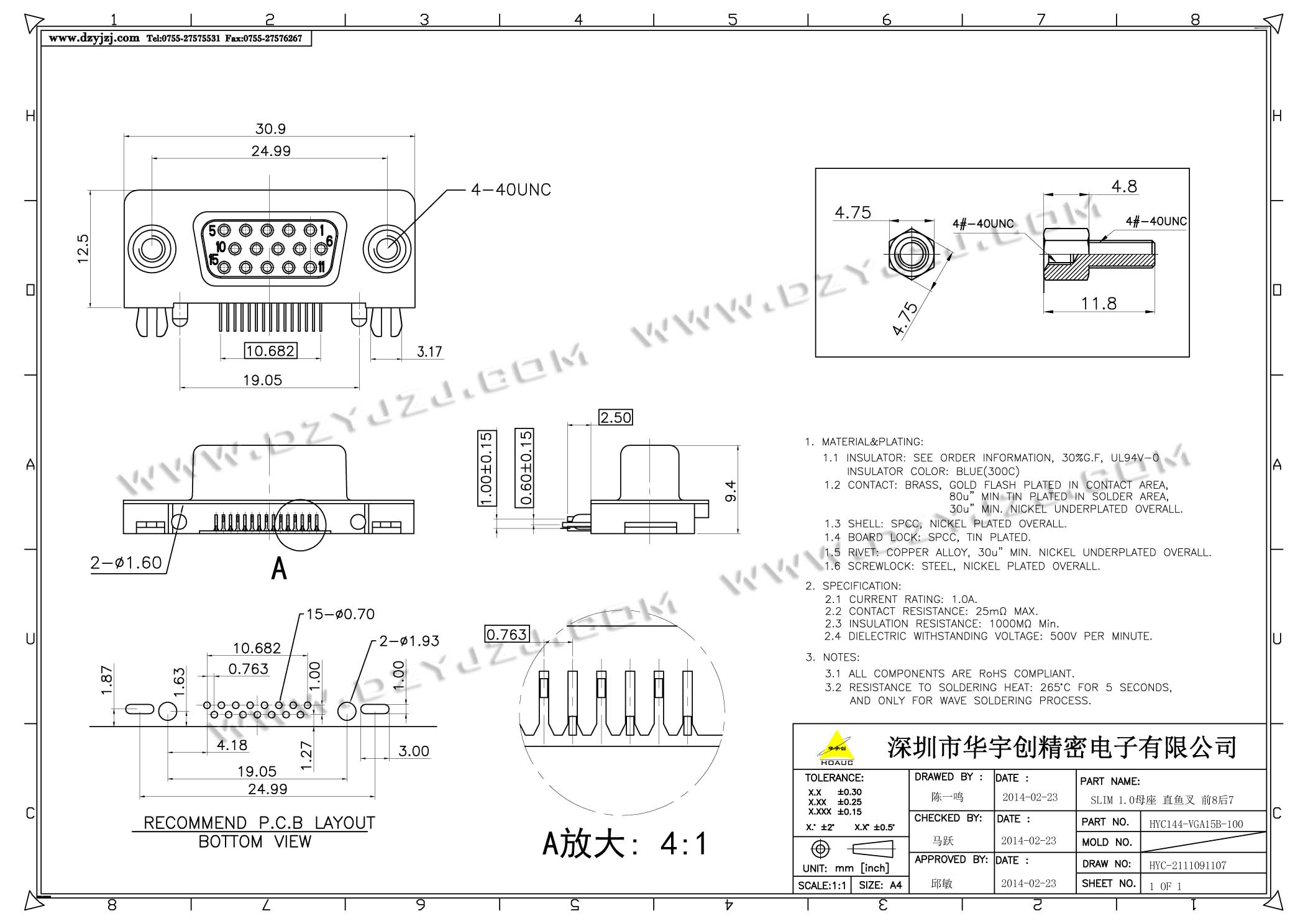 | 商品料号 | HYC144-VGA15B-100 |