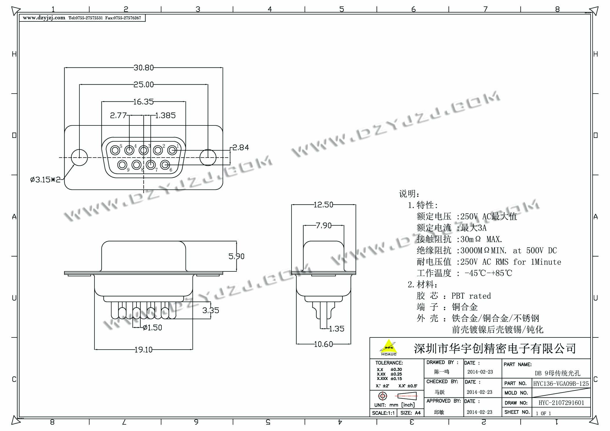 DB 9母传统光孔 点击复制