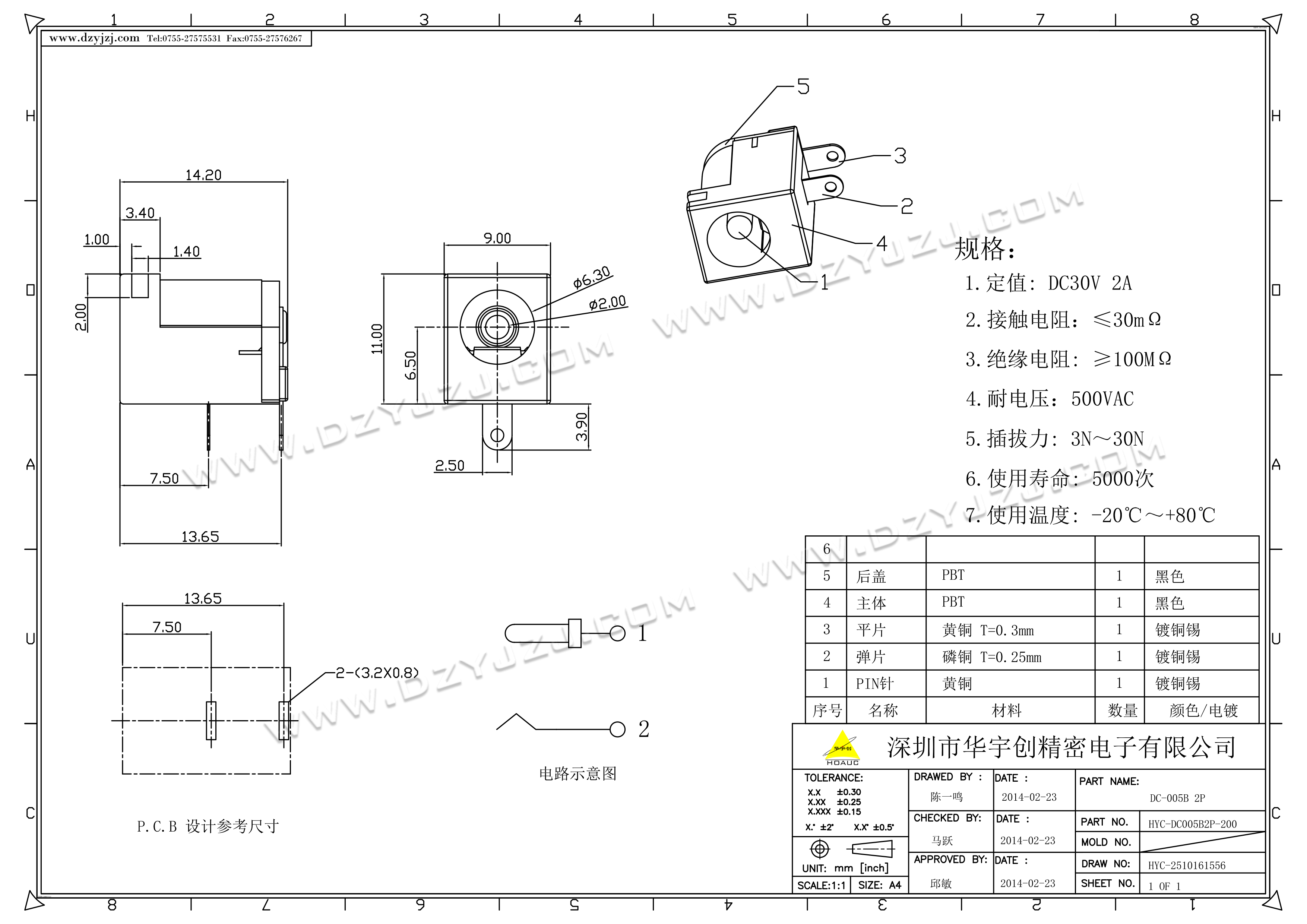 商品料号 HYC-DC005B2P-200