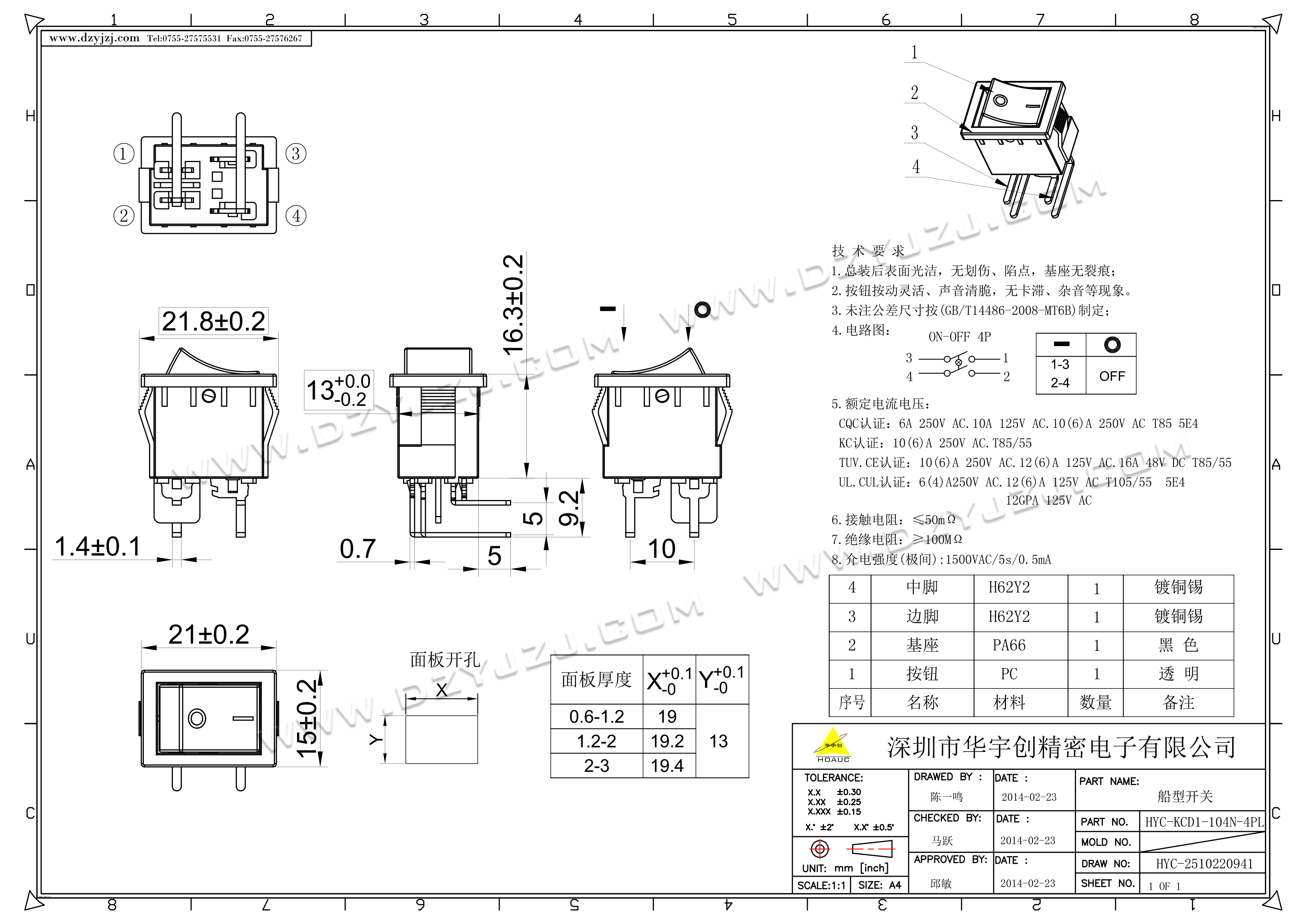 | 商品料号 | HYC-KCD1-104N-4PL |