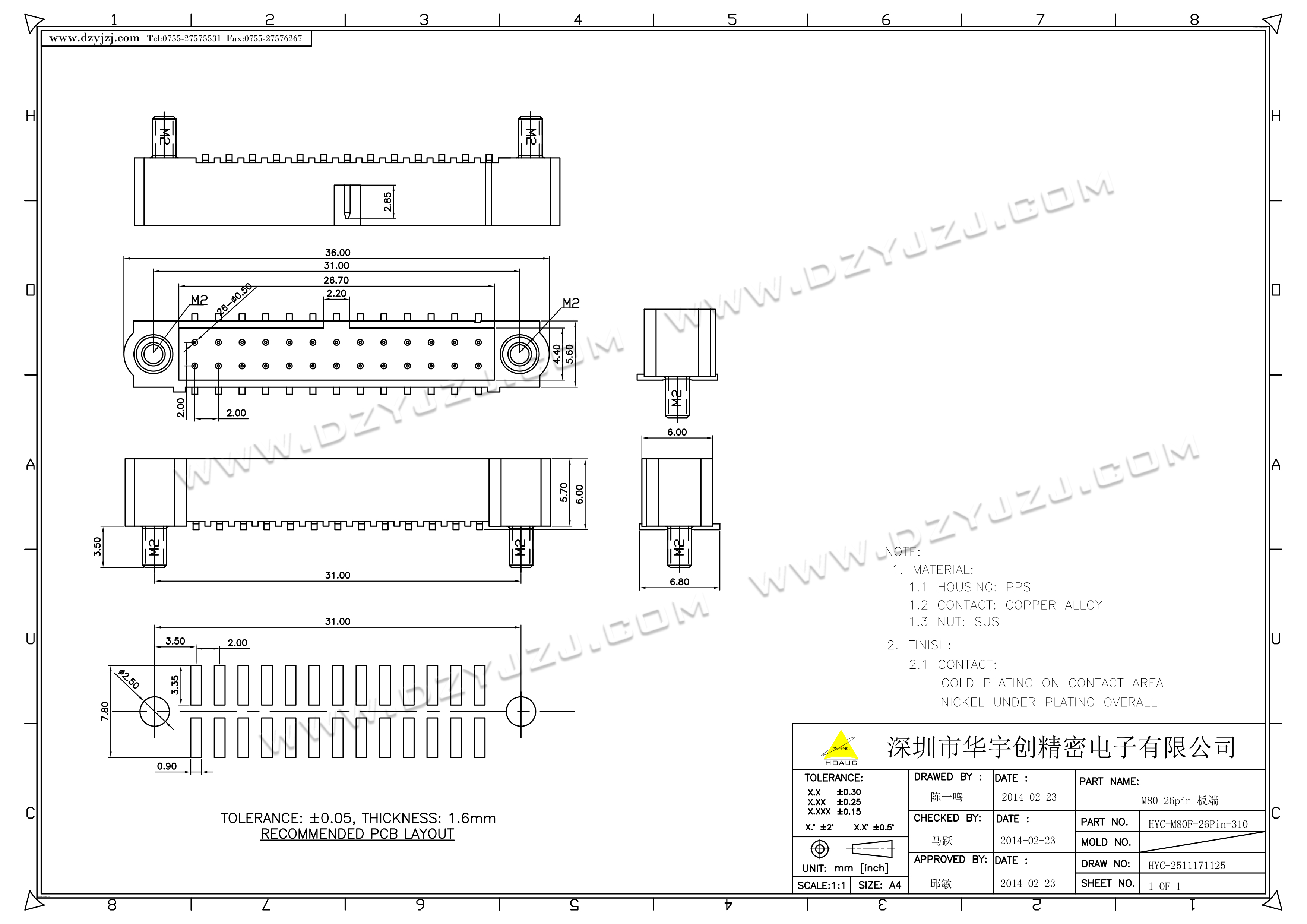 | 商品料号 | HYC-M80F-26P-310 |