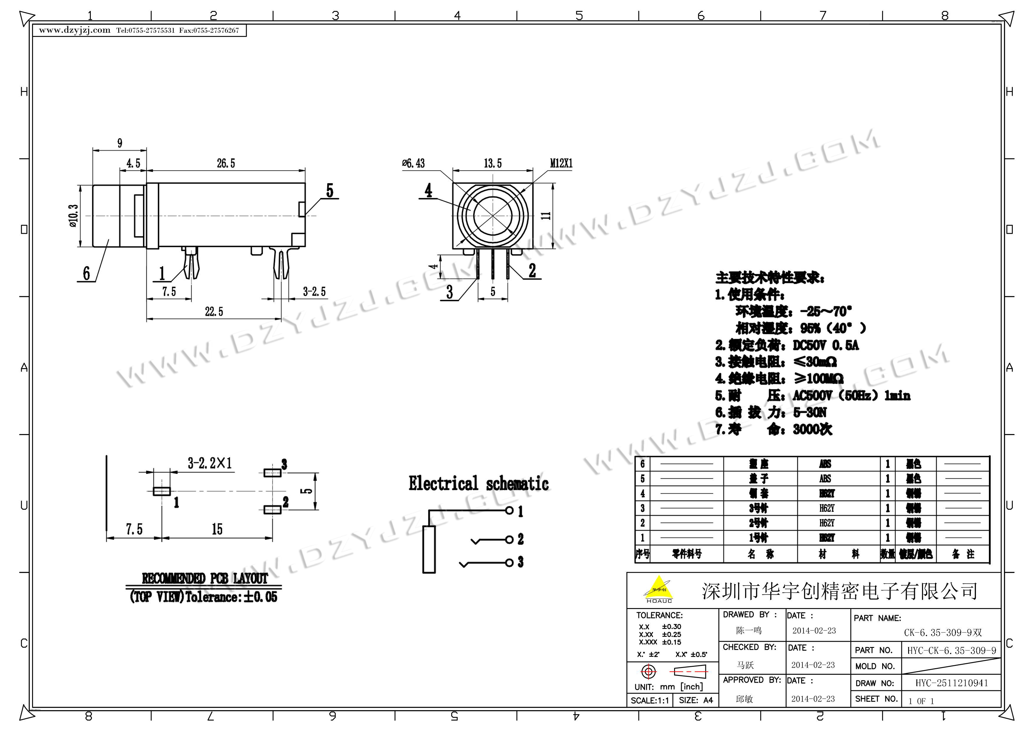 | 商品料号 | HYC-CK-6.35-309-9 |