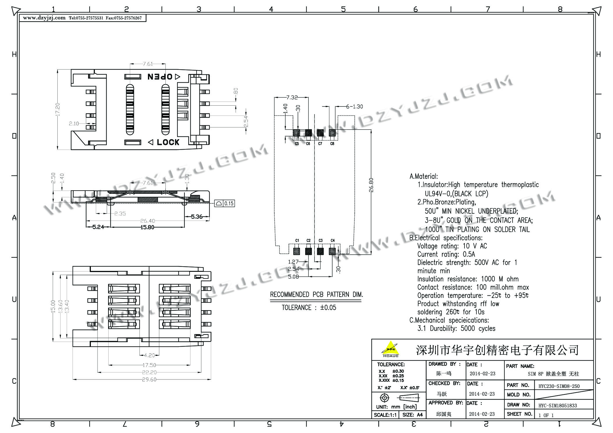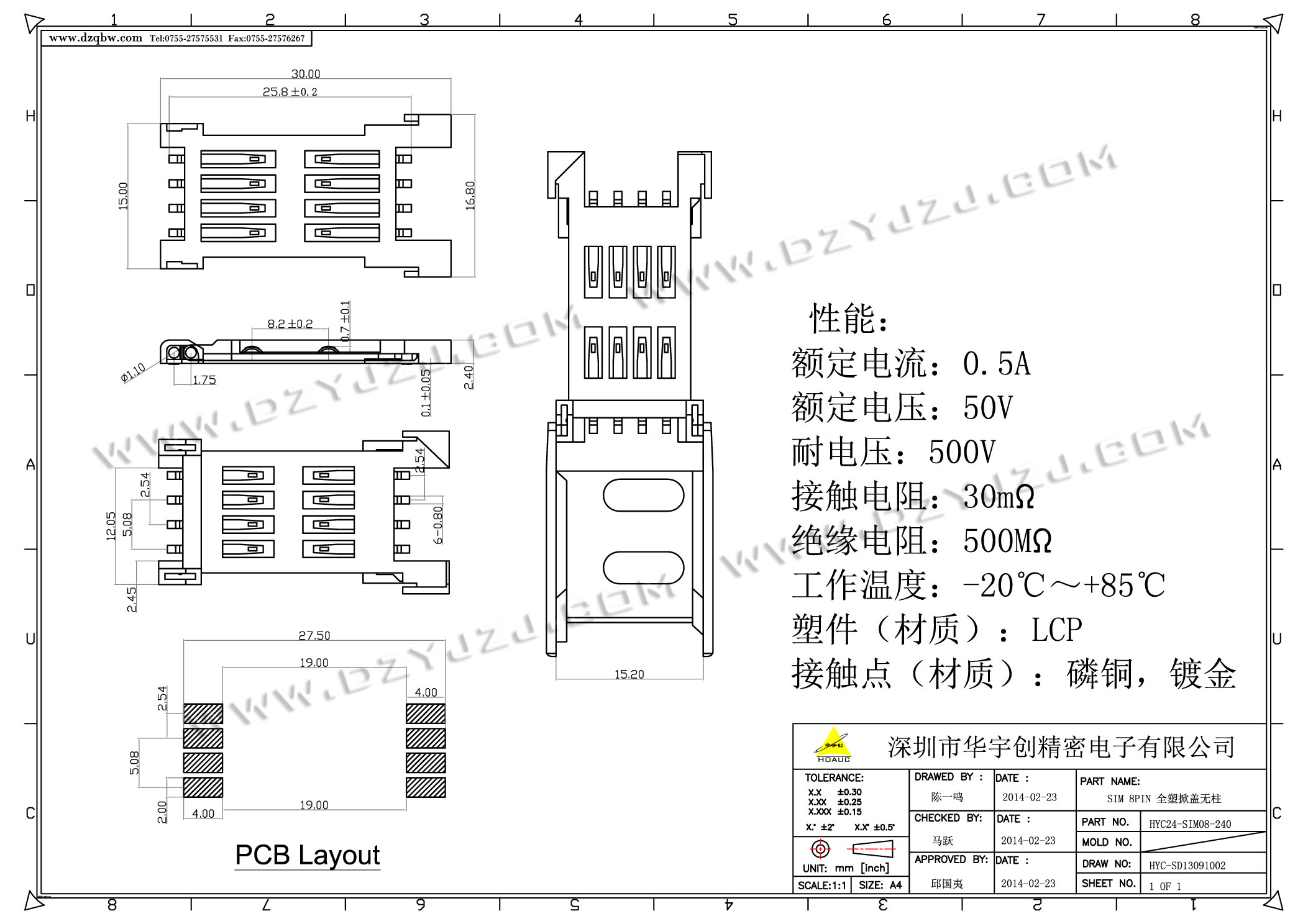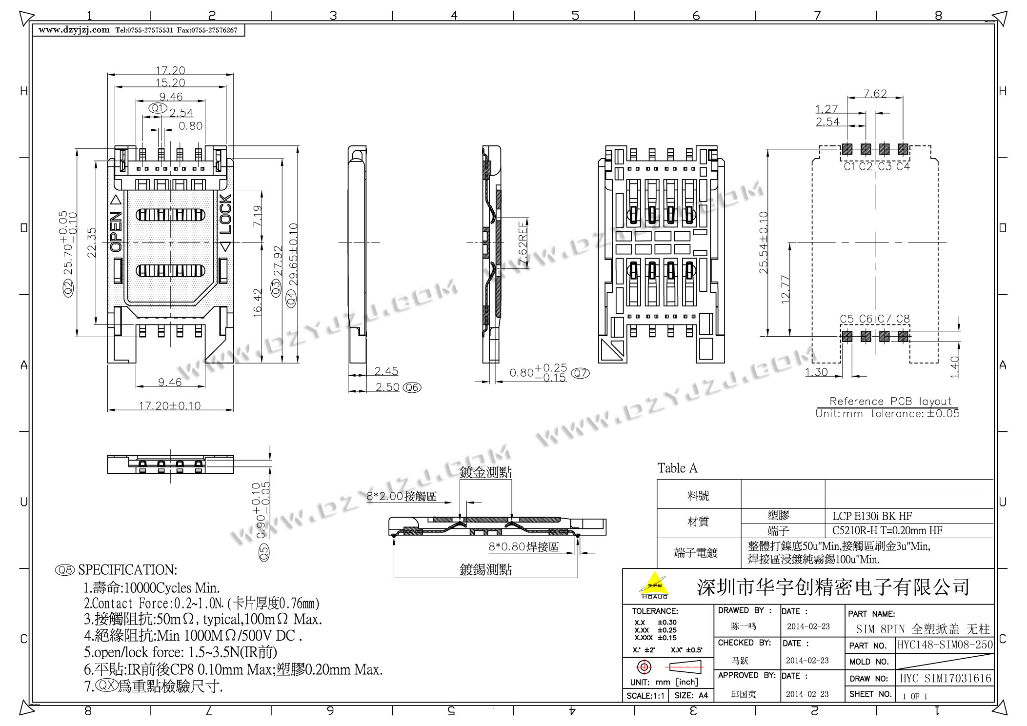 | 商品料号 | HYC230-SIM08-250 |