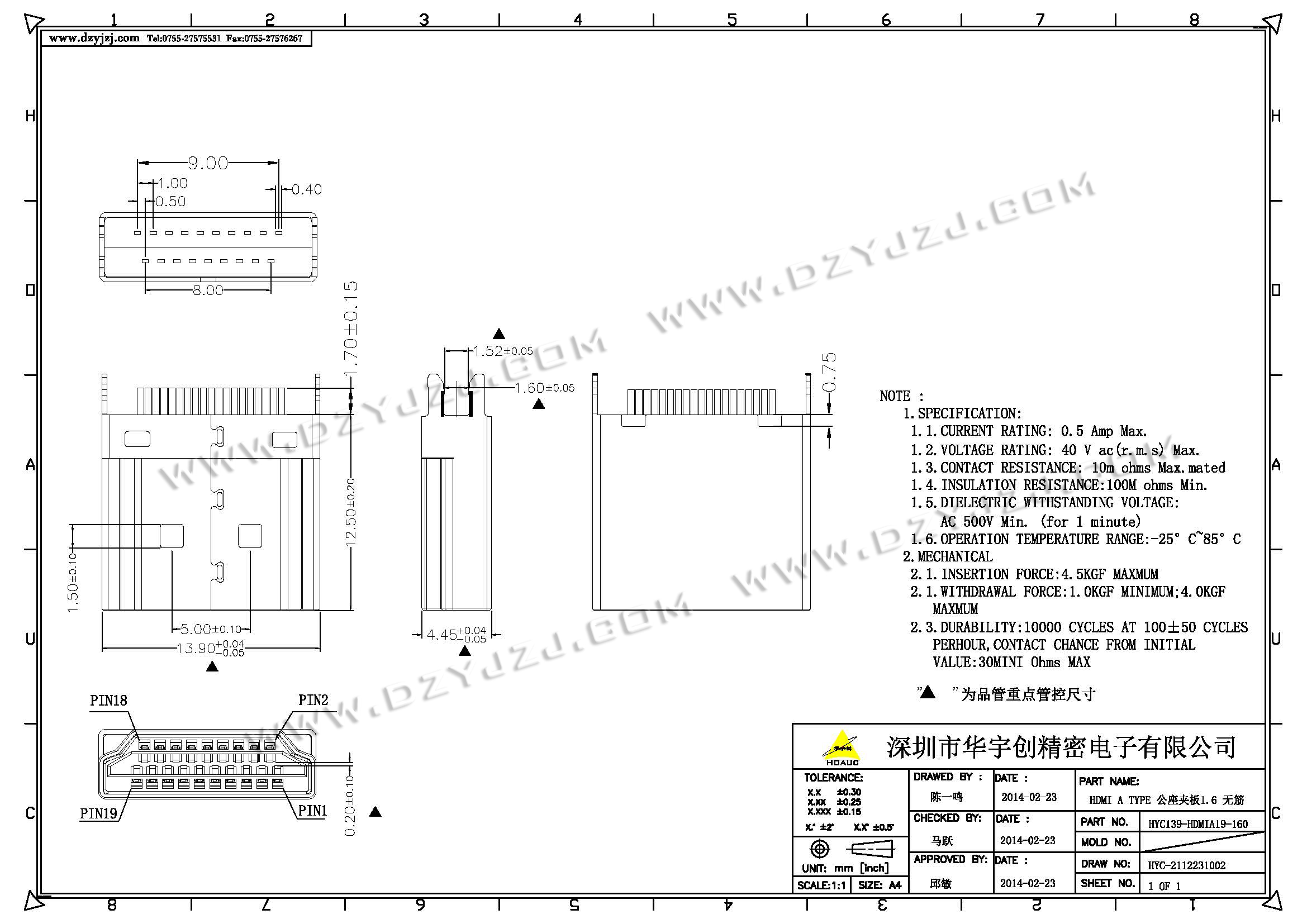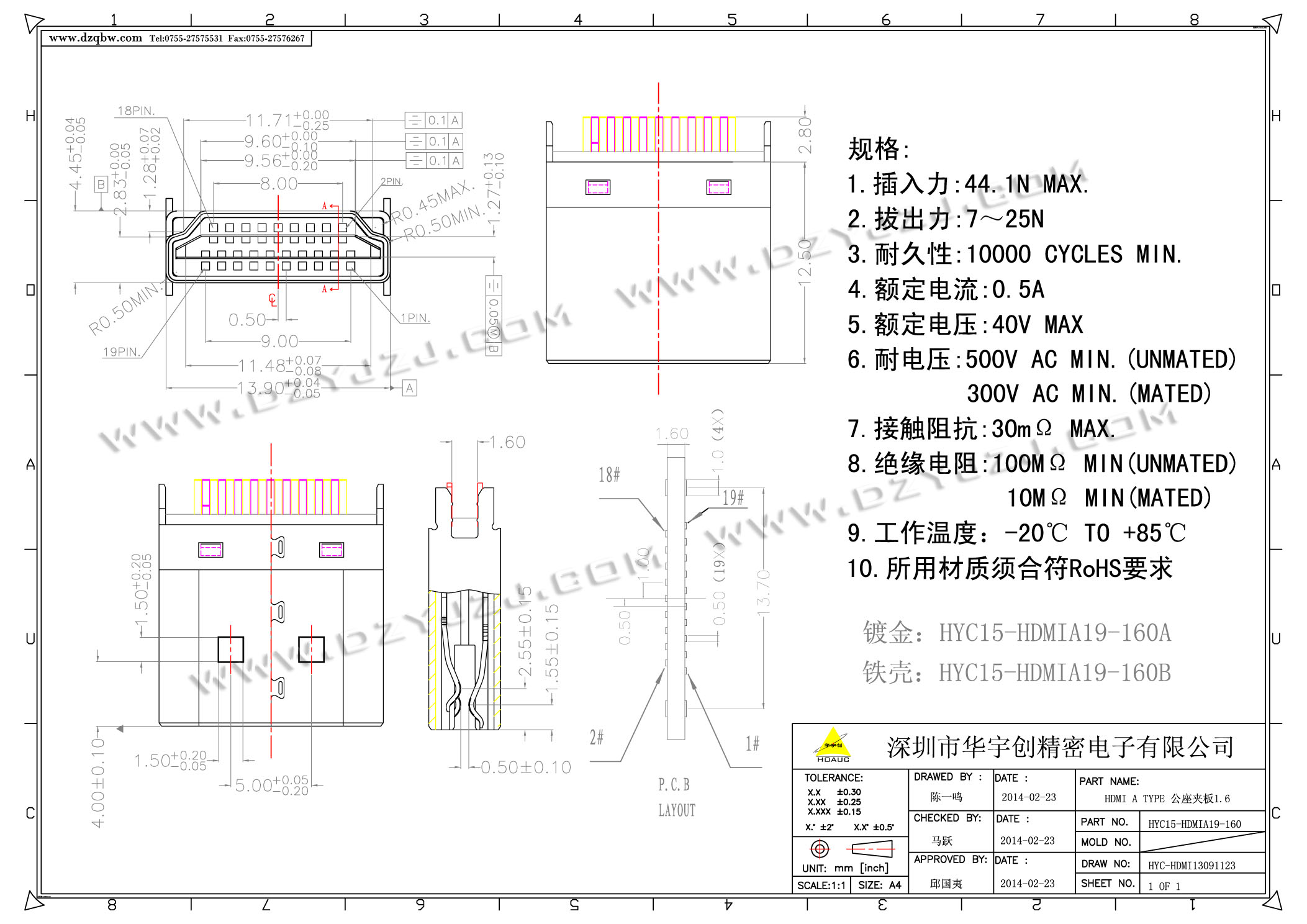 | 商品料号 | HYC15-HDMIA19-160 |