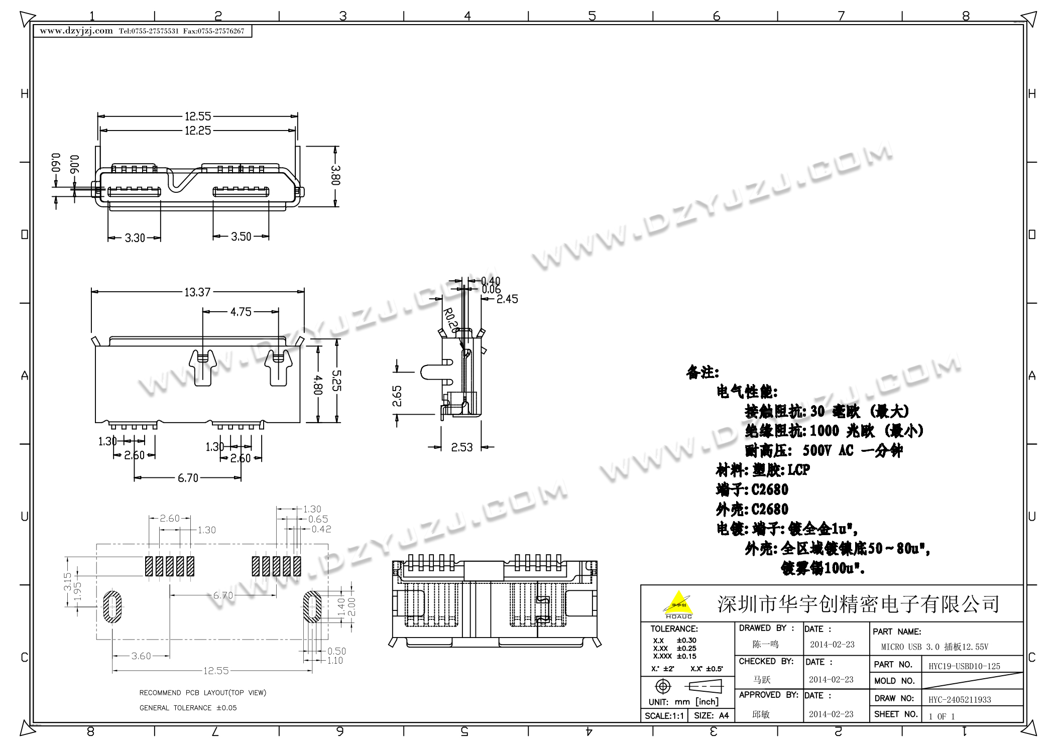 | 商品料号 | HYC19-USBD10-125 |