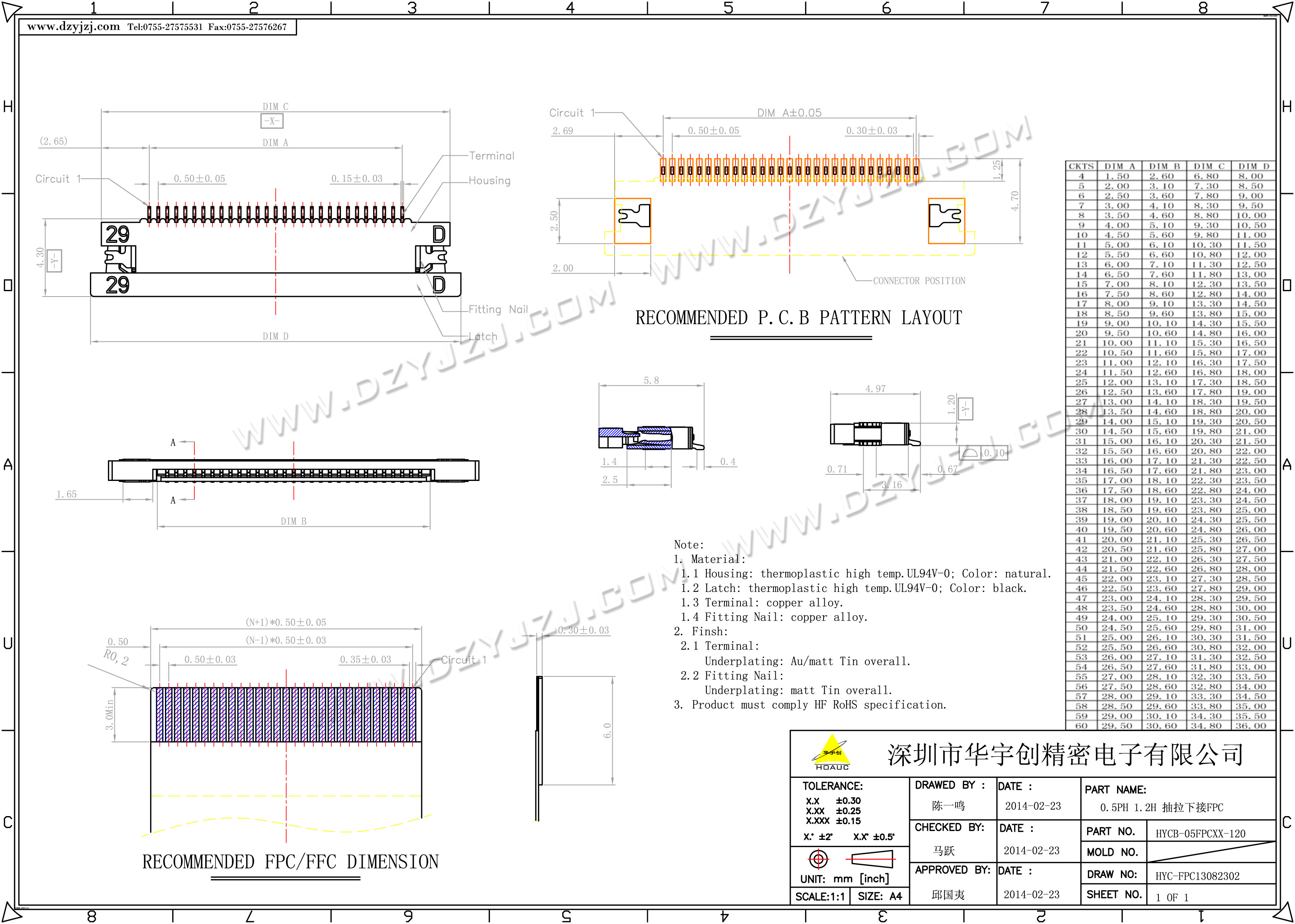 | 商品料号 | HYCB-05FPCXX-120 |
