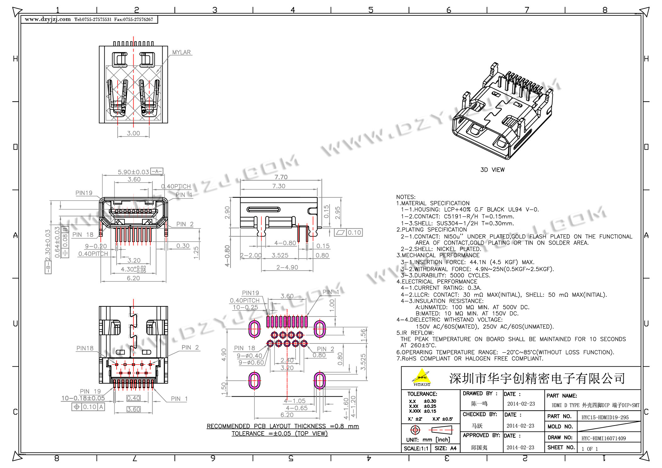 | 商品料号 | HYC15-HDMID19-295 |