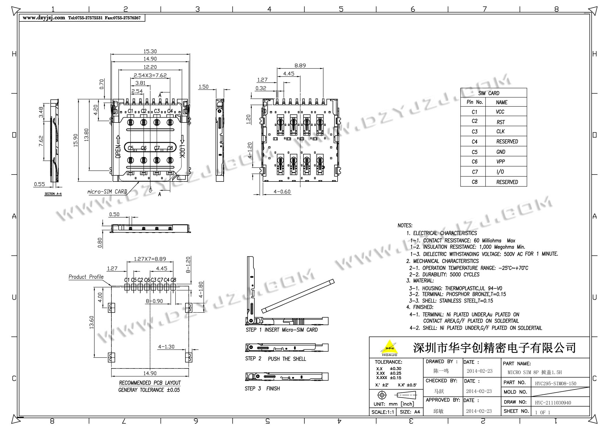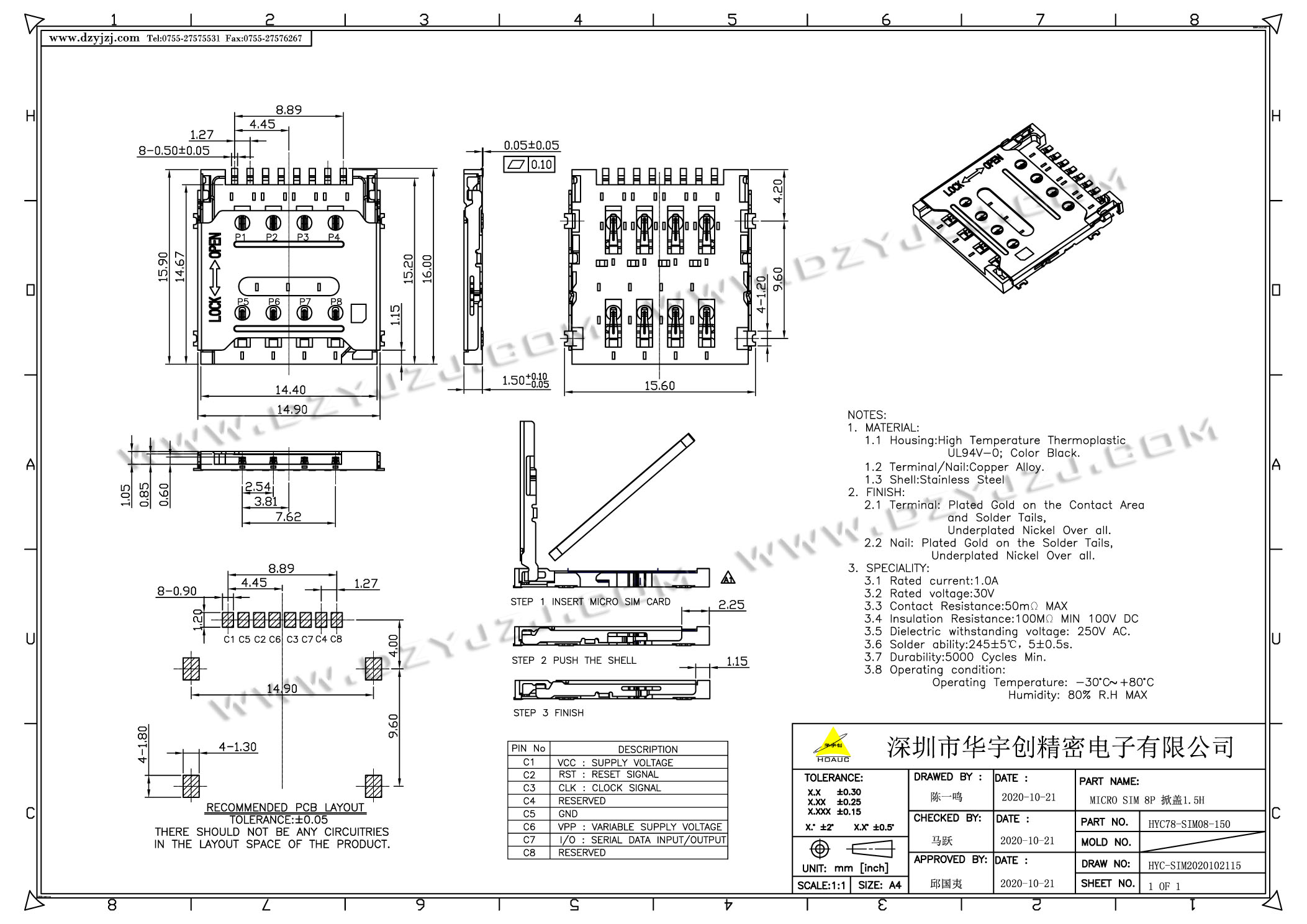 | 商品料号 | HYC111-SIM08-150 |