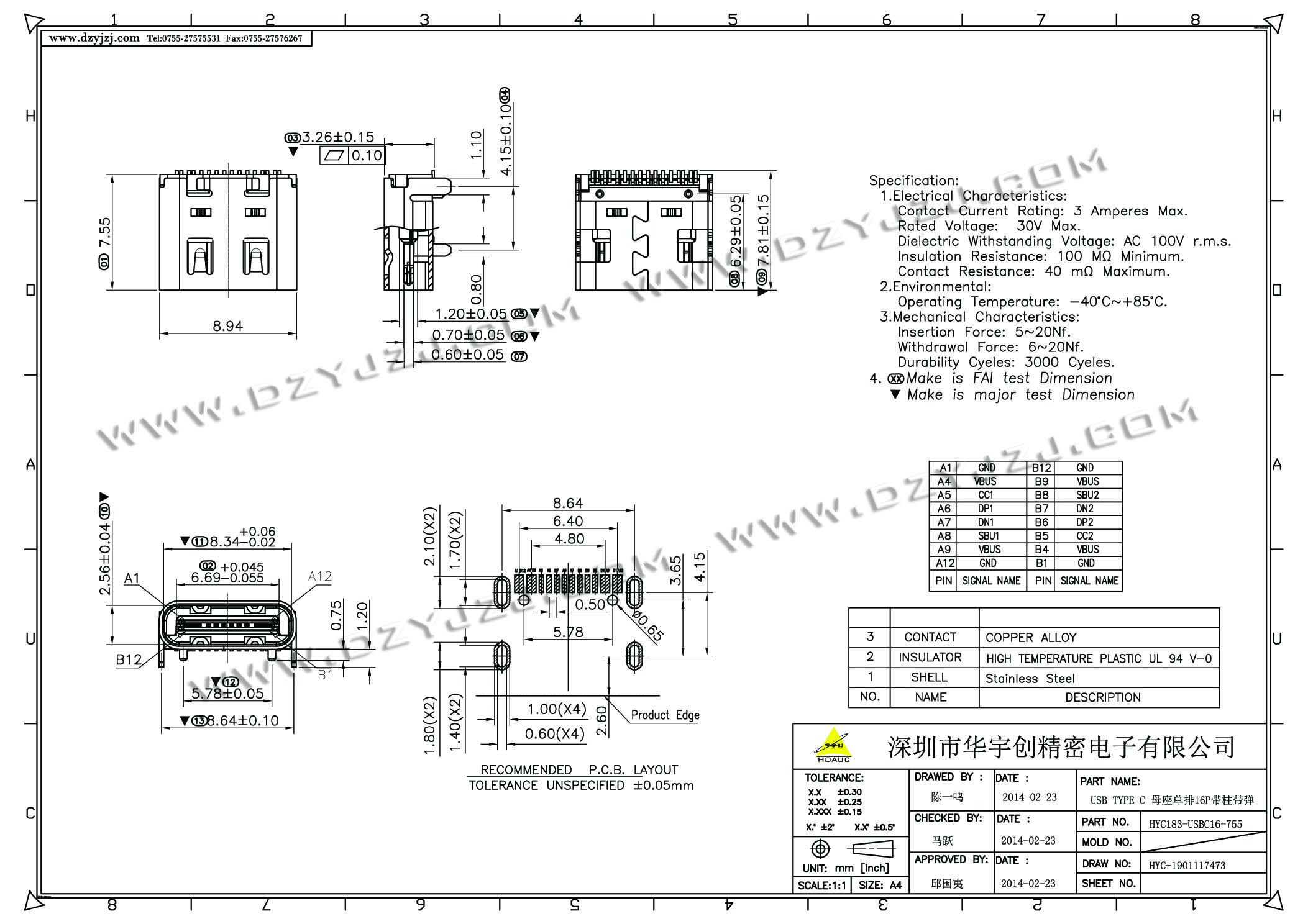 | 商品料号 | HYC183-USBC16-755 |